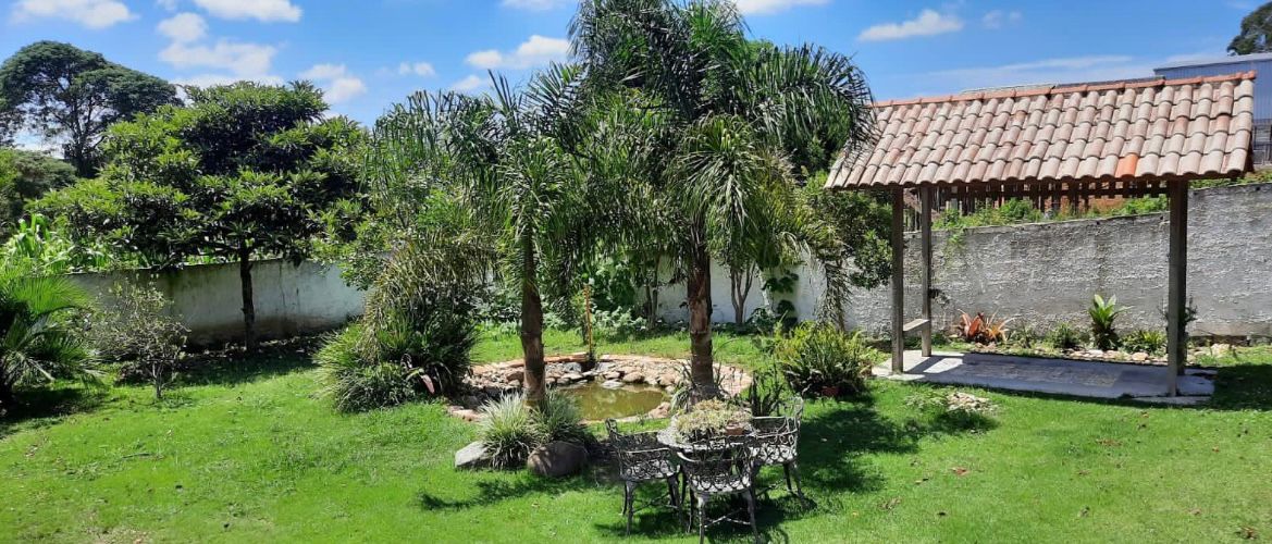 Possui 1300 m2 de área, com gramado maravilhoso , cerca de 20 árvores frutíferas produzindo, lago artificial e área gourmet!